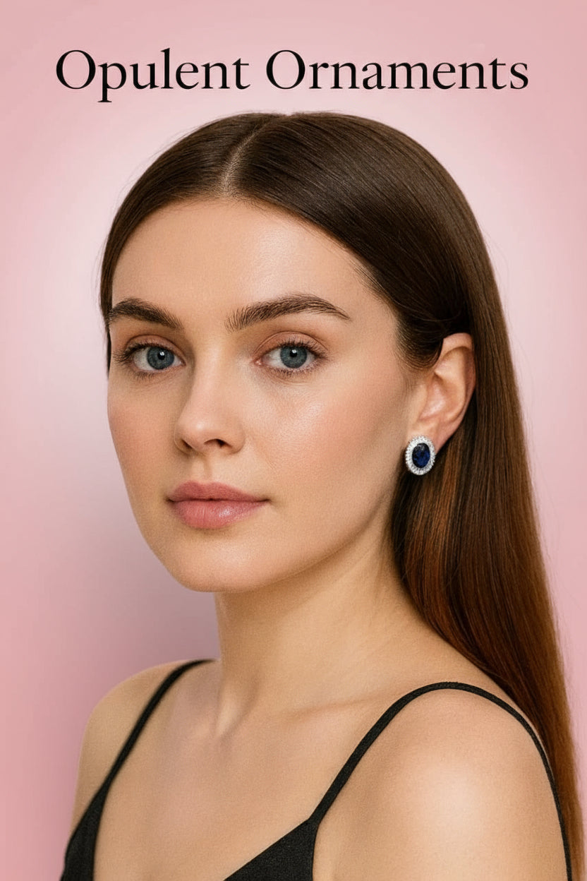 Royal Blue Sapphire Halo Stud Earrings